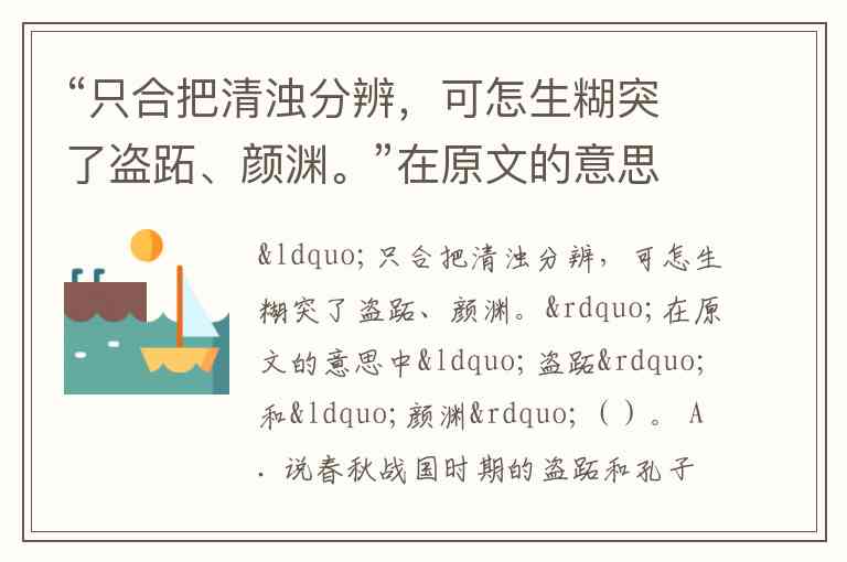 “只合把清浊分辨,可怎生糊突了盗跖、颜渊。”在原文的意思中“盗跖”和“颜渊”()。 A. 说春秋战国时期的盗跖和孔子的弟子颜回 B. 黑色和白色 C. 泛指坏人和好人