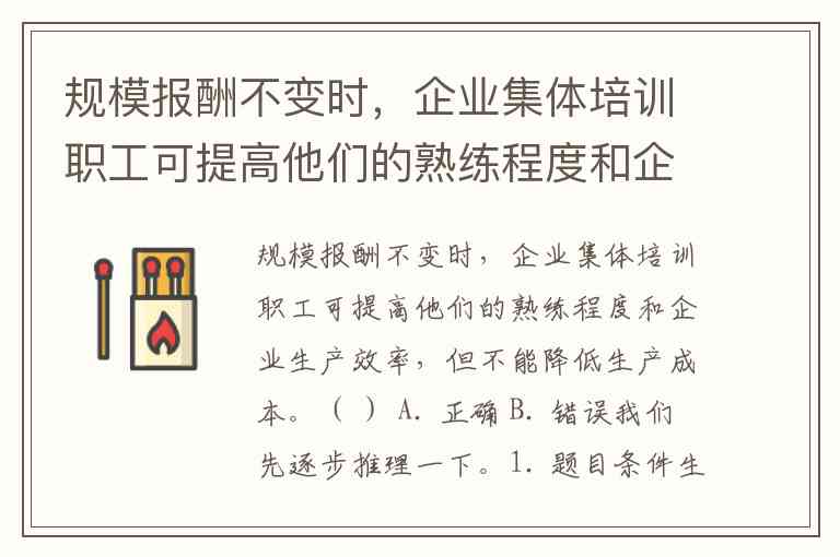 规模报酬不变时,企业集体培训职工可提高他们的熟练程度和企业生产效率,但不能降低生产成本。( ) A. 正确 B. 错误