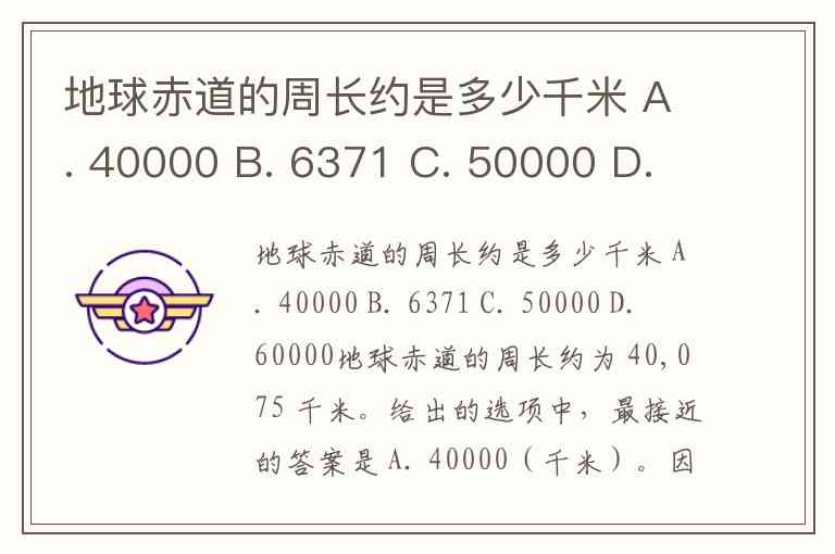 地球赤道的周长约是多少千米 A. 40000 B. 6371 C. 50000 D. 60000