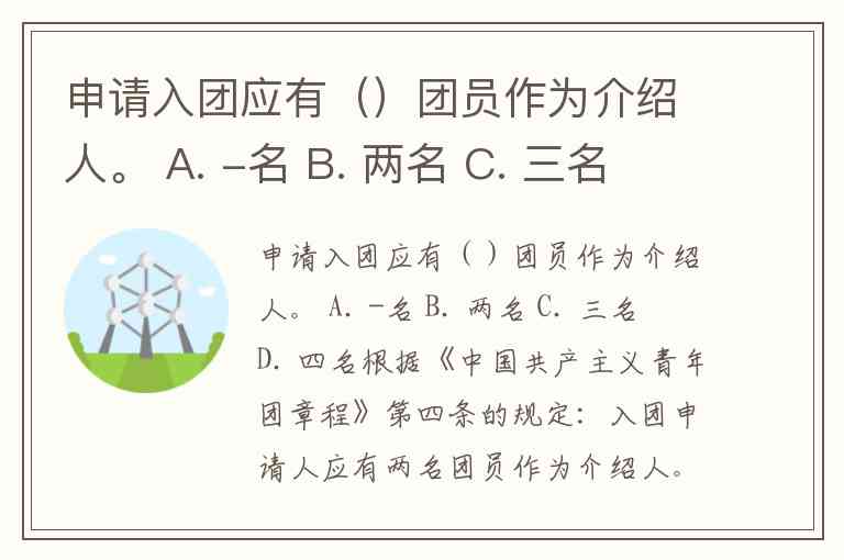 申请入团应有()团员作为介绍人。 A. -名 B. 两名 C. 三名 D. 四名