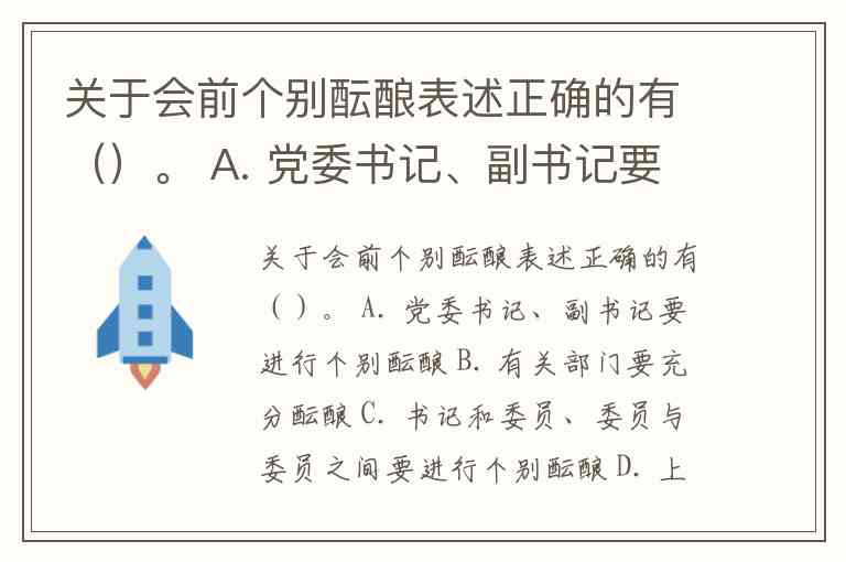 关于会前个别酝酿的正确表述,依据党内议事决策的通行原则和《中国共产党地方委员会工作条例》等相关规定,应当理解其核心在于领导班子成员之间就议题进行充分沟通协商,以保证会议决策的质量和效率。