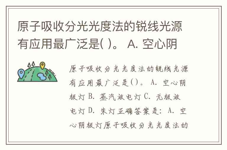 原子吸收分光光度法的锐线光源有应用最广泛是( )。 A. 空心阴极灯 B. 蒸汽放电灯 C. 无极放电灯 D. 朱灯