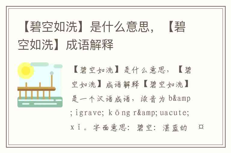 【碧空如洗】是什么意思,【碧空如洗】成语解释