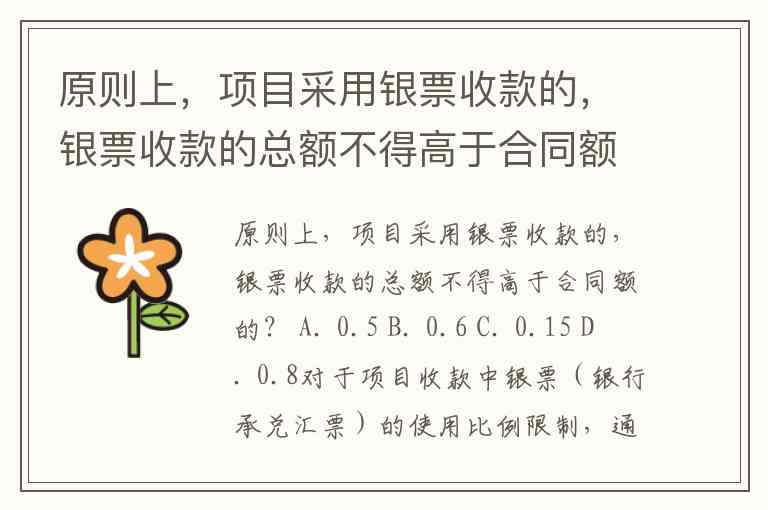 原则上,项目采用银票收款的,银票收款的总额不得高于合同额的? A. 0.5 B. 0.6 C. 0.15 D. 0.8