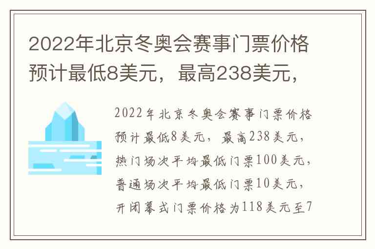 给出北京冬奥会各类赛事的门票价格(美元标价),并要求判断价格相关的说法。