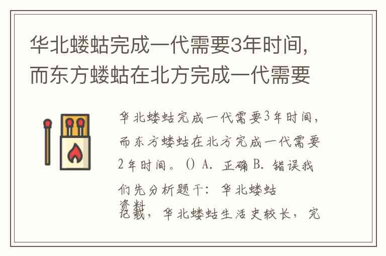 在北方,东方蝼蛄通常 1 年 1 代 或 部分需跨年(实际有效发育时间 1 年多,跨 2 个年份),但许多教材中明确指出:在北方(如东北、华北北部)东方蝼蛄完成一个世代通常需要 2 年。题干说的“在北方完成一代需要 2 年时间”是正确的常见描述。