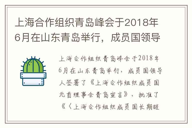 上海合作组织青岛峰会于2018年6月在山东青岛举行,成员国领导人签署了《上海合作组织成员国元首理事会青岛宣言》,批准了《〈上海合作组织成员国长期睦邻友好合作条约〉实施纲要(2018-2022年)》等一系列决议,青岛峰会成为上海合作组织发展进程中一座新的里程碑。上海合作组织() A. 作为世界性国际组织促进了人类和平与进步 B. 通过推进成员国合作实现了区域政治一体化 C. 已经成为世界一体化程度最高的区域性组织 D. 在维护本地区繁荣稳定方面作出了巨大贡献