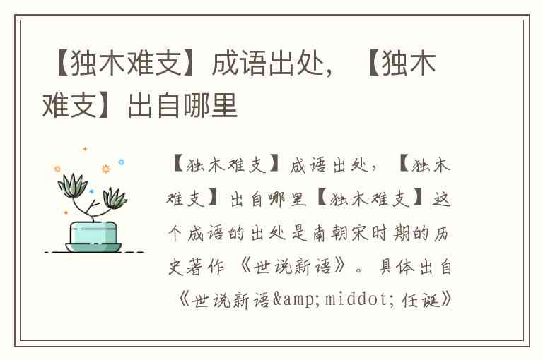 因此,“独木难支”不仅出自《世说新语》的生动典故,更成为汉语中形容个人力量有限的经典比喻。