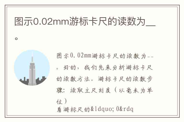 由于你只给出了“示0.02mm游标卡尺的读数为__”,没有给具体图片或主尺、游标对齐位置的数据,这里我无法直接给出具体数字,但可以举一个例子说明如何填空。