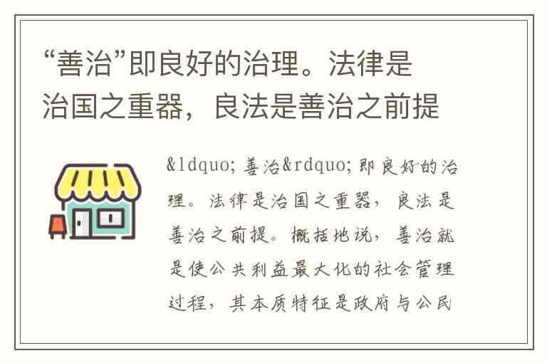 从“善治”的定义来看,其核心是公共利益最大化,强调政府与公民的合作管理,以及政府与市场、社会的良好互动。