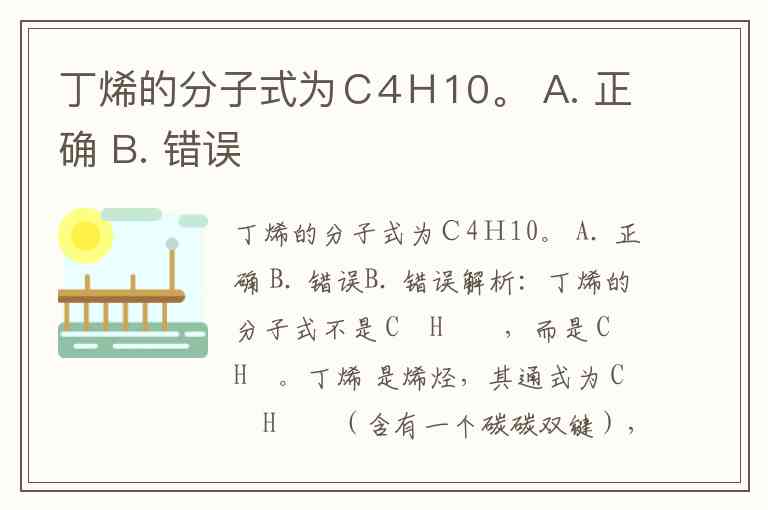 丁烯的分子式为C4H10。 A. 正确 B. 错误