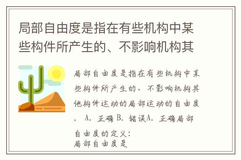 局部自由度是指在有些机构中某些构件所产生的、不影响机构其他构件运动的局部运动的自由度。 A. 正确 B. 错误