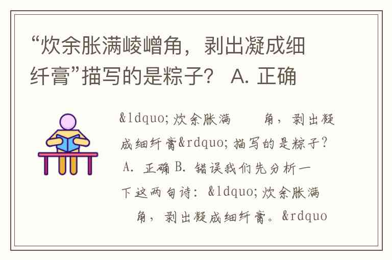 “炊余胀满崚嶒角,剥出凝成细纤膏”描写的是粽子? A. 正确 B. 错误