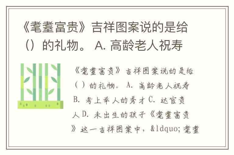 《耄耋富贵》吉祥图案说的是给()的礼物。 A. 高龄老人祝寿 B. 考上举人的秀才 C. 达官贵人 D. 未出生的孩子