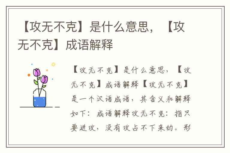 【攻无不克】是一个汉语成语,其含义和解释如下: