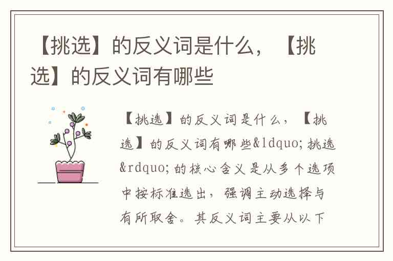 “挑选”的核心含义是从多个选项中按标准选出,强调主动选择与有所取舍。其反义词主要从以下三个角度构成: