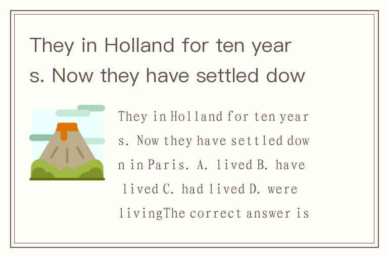 They in Holland for ten years. Now they have settled down in Paris. A. lived B. have lived C. had lived D. were living
