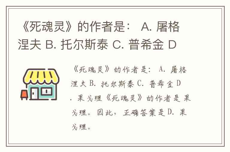 《死魂灵》的作者是: A. 屠格涅夫 B. 托尔斯泰 C. 普希金 D. 果戈理
