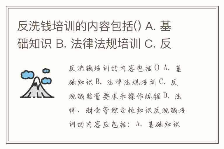 反洗钱培训的内容包括() A. 基础知识 B. 法律法规培训 C. 反洗钱监管要求和操作规程 D. 法律、财会等综合性知识