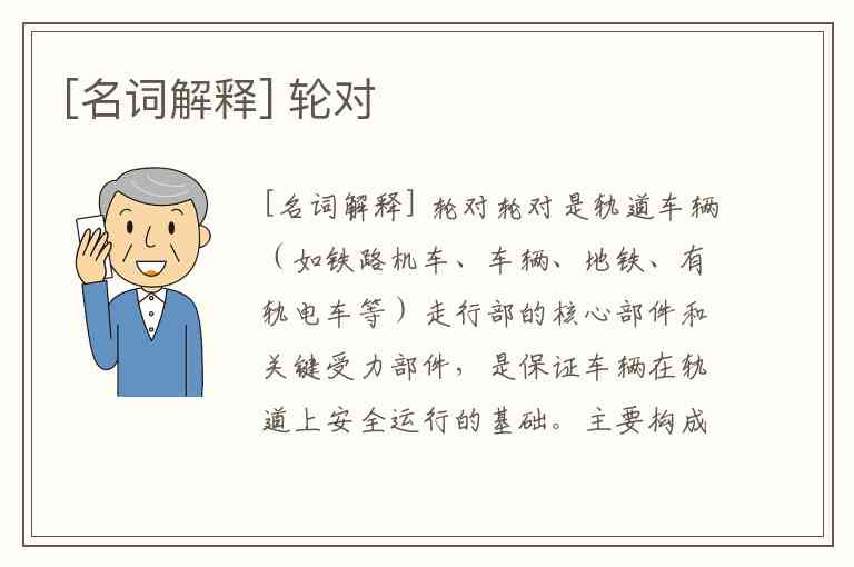 通常由一根车轴和两个车轮通过过盈配合(俗称“压装”)牢固地结合成一个整体。在电气化轨道交通车辆(如电力机车、动车组、地铁列车)上,轮对通常还包括: