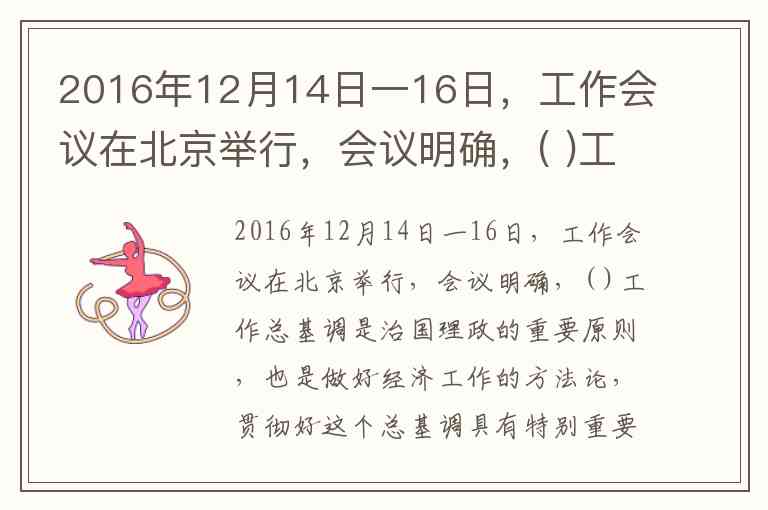 2016年12月14日一16日,工作会议在北京举行,会议明确,( )工作总基调是治国理政的重要原则,也是做好经济工作的方法论,贯彻好这个总基调具有特别重要的意义。 A. 积极创新 B. 创新驱动 C. 均衡发展 D. 稳重求进