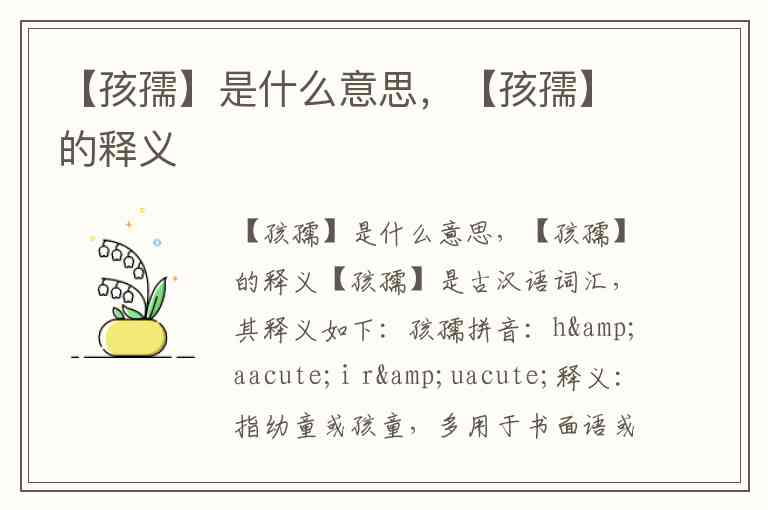释义:指幼童或孩童,多用于书面语或古代文献中,强调年幼的状态。