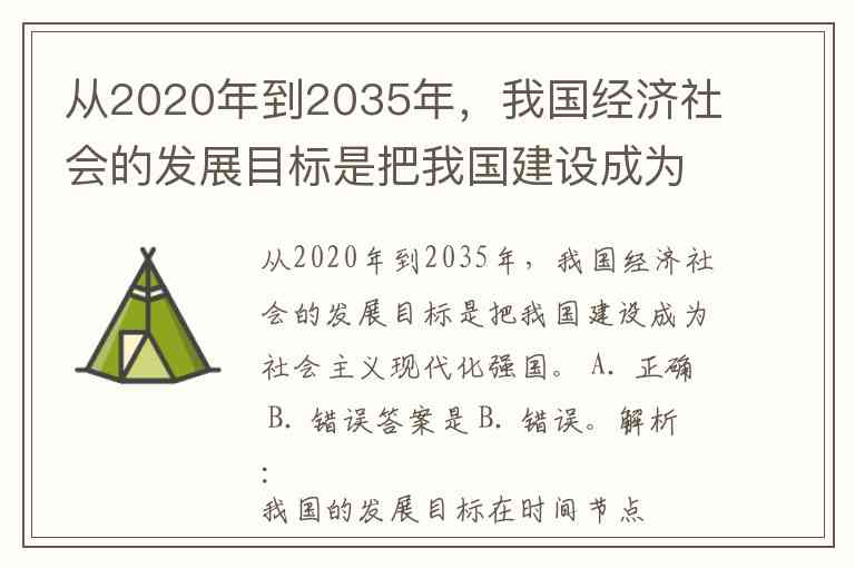 从2020年到2035年,我国经济社会的发展目标是把我国建设成为社会主义现代化强国。 A. 正确 B. 错误