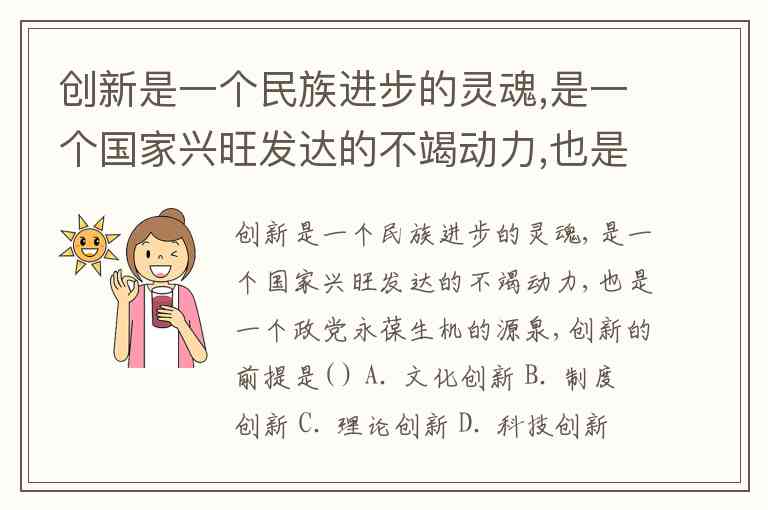 创新是一个民族进步的灵魂,是一个国家兴旺发达的不竭动力,也是一个政党永葆生机的源泉,创新的前提是( ) A. 文化创新 B. 制度创新 C. 理论创新 D. 科技创新