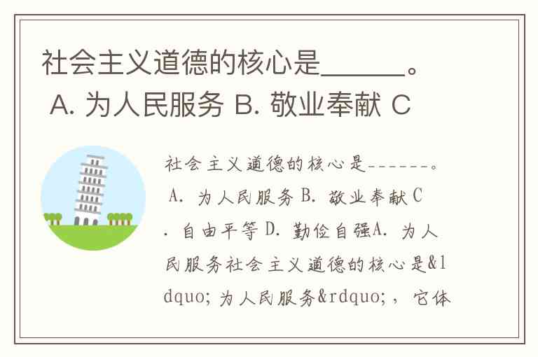 社会主义道德的核心是______。 A. 为人民服务 B. 敬业奉献 C. 自由平等 D. 勤俭自强