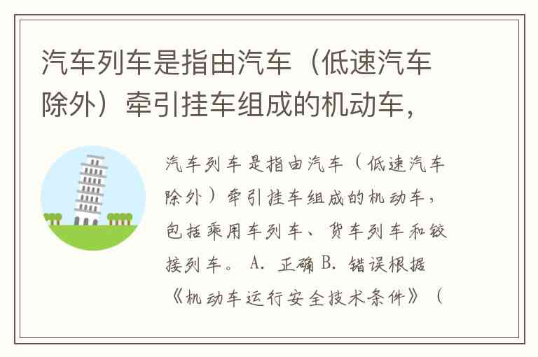 汽车列车是指由汽车(低速汽车除外)牵引挂车组成的机动车,包括乘用车列车、货车列车和铰接列车。 A. 正确 B. 错误