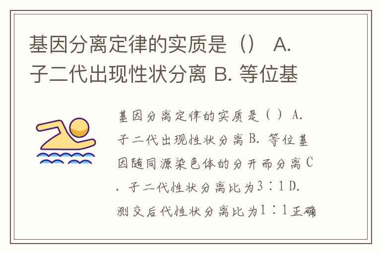 基因分离定律的实质是:在减数分裂形成配子的过程中,等位基因会随同源染色体的分开而分离,分别进入不同的配子中,随配子遗传给后代。