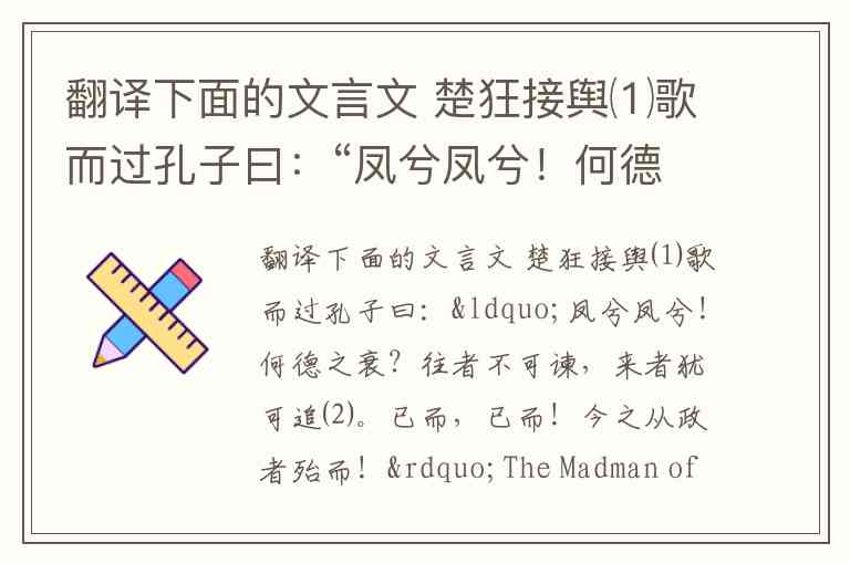 翻译下面的文言文 楚狂接舆⑴歌而过孔子曰:“凤兮凤兮!何德之衰?往者不可谏,来者犹可追⑵。已而,已而!今之从政者殆而!”