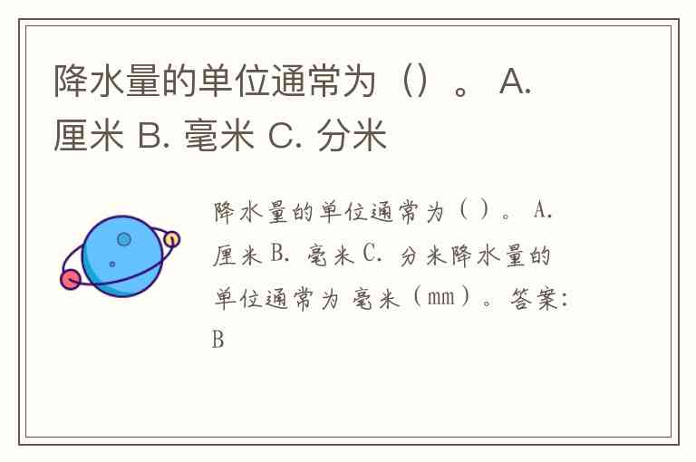 降水量的单位通常为()。 A. 厘米 B. 毫米 C. 分米