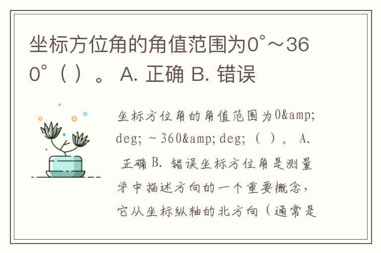 坐标方位角的角值范围为0°~360°( )。 A. 正确 B. 错误