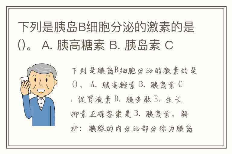 因此,题目问的是“胰岛B细胞分泌的激素”,对应的只有 胰岛素。