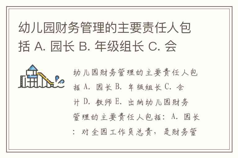 幼儿园财务管理的主要责任人包括 A. 园长 B. 年级组长 C. 会计 D. 教师 E. 出纳