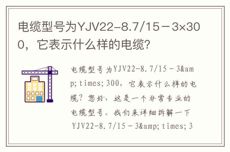 您好,这是一个非常专业的电缆型号。我们来详细拆解一下 YJV22-8.7/15-3×300 每个部分的含义: