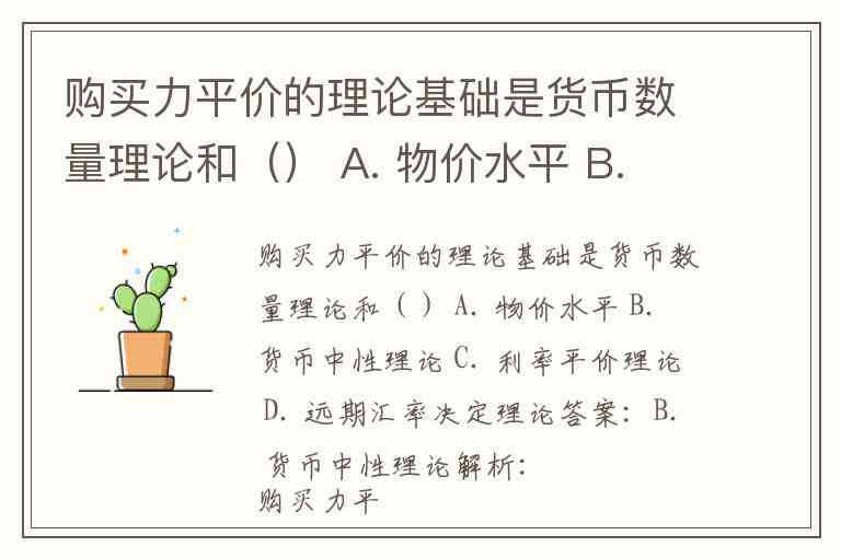 购买力平价的理论基础是货币数量理论和() A. 物价水平 B. 货币中性理论 C. 利率平价理论 D. 远期汇率决定理论