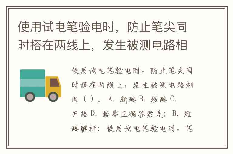 使用试电笔验电时,防止笔尖同时搭在两线上,发生被测电路相间()。 A. 断路 B. 短路 C. 开路 D. 接零