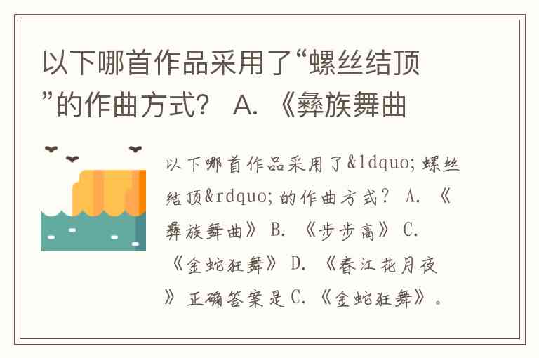 以下哪首作品采用了“螺丝结顶”的作曲方式? A. 《彝族舞曲》 B. 《步步高》 C. 《金蛇狂舞》 D. 《春江花月夜》