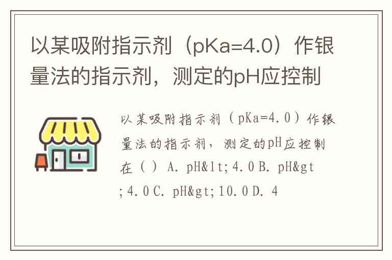 以某吸附指示剂(pKa=4.0)作银量法的指示剂,测定的pH应控制在() A. pH<4.0 B. pH>4.0 C. pH>10.0 D. 4