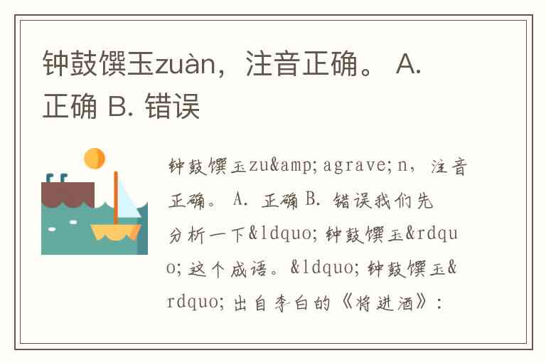 钟鼓馔玉zuàn,注音正确。 A. 正确 B. 错误