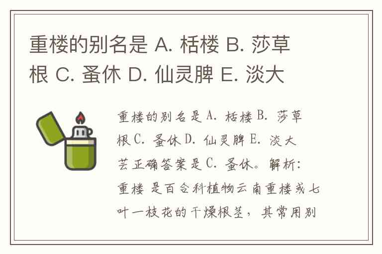 重楼 是百合科植物云南重楼或七叶一枝花的干燥根茎,其常用别名即为 蚤休(也写作“蚩休”)。