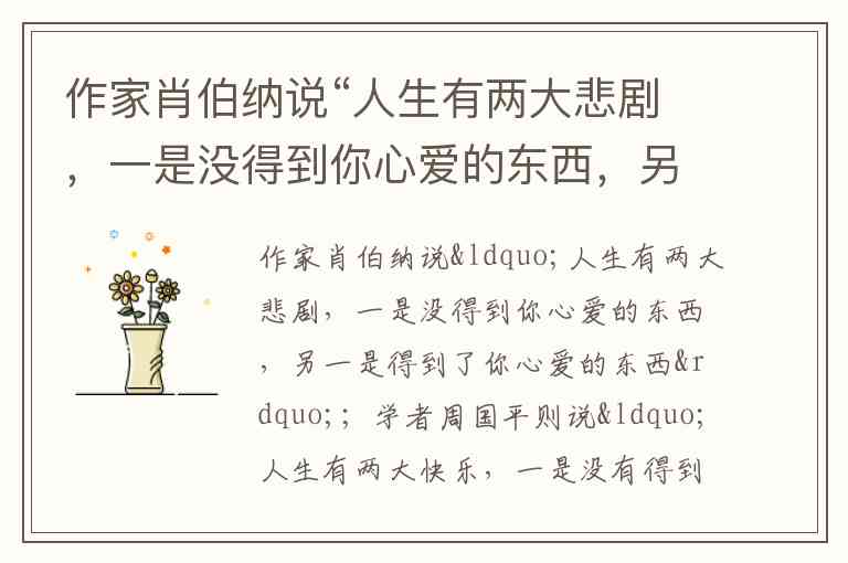 肖伯纳认为“得到了心爱的东西”也是悲剧,而周国平认为“得到了心爱的东西”是快乐(可以去品味和体验)。同样的事件,在他们的表述中,情感评价和价值判断不同,这并不是事件本身的客观性质不同,而是主体对它的主观解释和选择不同。