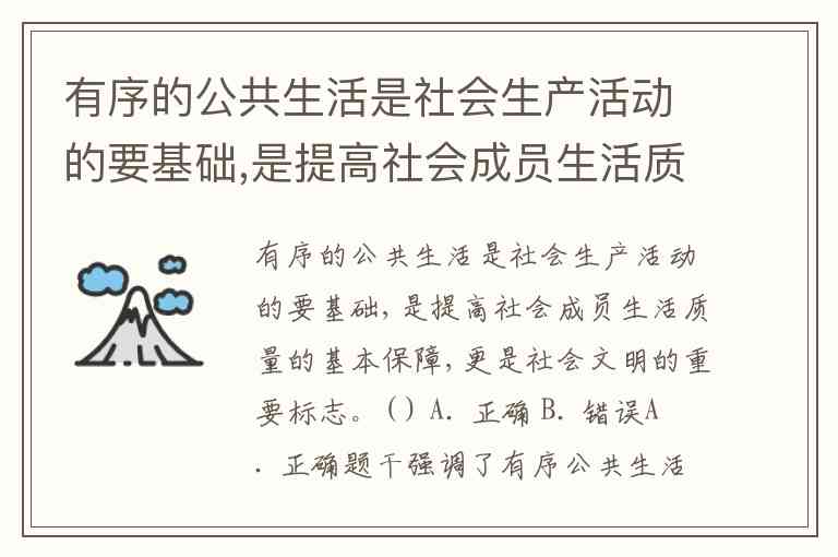 有序的公共生活是社会生产活动的要基础,是提高社会成员生活质量的基本保障,更是社会文明的重要标志。( ) A. 正确 B. 错误