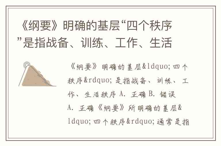 《纲要》明确的基层“四个秩序”是指战备、训练、工作、生活秩序 A. 正确 B. 错误