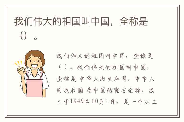 我们伟大的祖国叫中国,全称是 中华人民共和国。