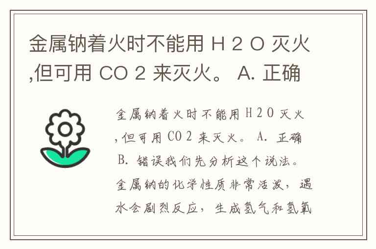 金属钠着火时不能用 H 2 O 灭火,但可用 CO 2 来灭火。 A. 正确 B. 错误