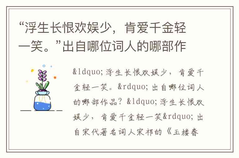 “浮生长恨欢娱少,肯爱千金轻一笑”出自宋代著名词人宋祁的《玉楼春·春景》。全词如下: