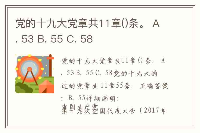 党的十九大党章共11章()条。 A. 53 B. 55 C. 58